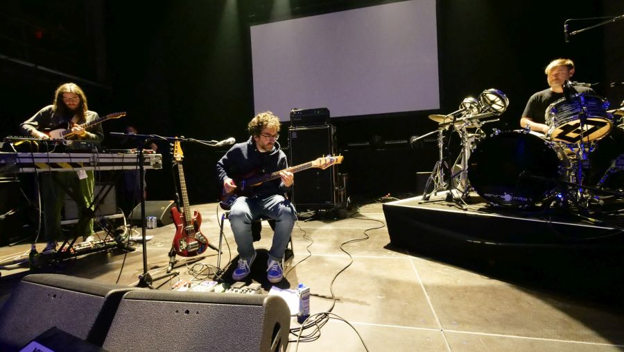 Eine weitere interessante Quervebindung hatte ANIKA vorzuweisen, die im Kesselhaus mit ihrer Band ihr selbstbetiteltes Album zum Vortrag brachte und dabei auch Coverversionen wie DYLANs „Masters Of War“ aus ihrer Frühphase im gepflegten Krautrock-Corssover-Wave-Setting zu Gehör brachte. Die Wahlberlinerin hatte ihre musikalische Laufbahn vor ungefähr 10 Jahren in Bristol mit einem gemeinsamen Cover-Projekt mit GEOFF BARROW von PORTISHEAD begonnen, der auf dem Synästhesie-Festival mit seinem Fusion-Math-Rock-Trio BEAK> als Headliner-Act am zweiten Tag ein überwiegend männliches Publikum mit stachelig-visionärem Experimental-Rock in Atem hielt und sich dabei im schrulligen Dialog mit seinen Musikern als Possen reißender Showman präsentierte.