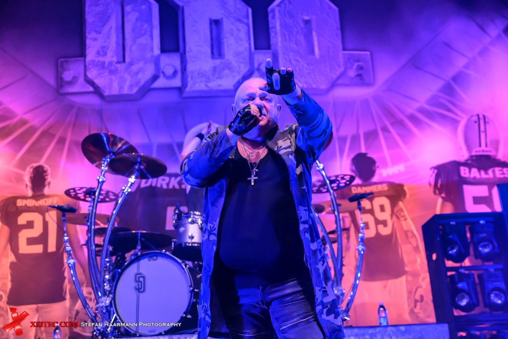 Der Tausch der Backdrops hinter dem mächtigen Drumkit des Dirkschneider-Sprößlings Sven gibt den Blick auf das überdimensionale Album-Cover frei, dessen Hauptakteure in Footballer-Montur Modell gestanden haben. Neben seinem Vater Udo greifen an diesem Abend Fabian Dee Dammer (Gitarre), Andrey Smirnov (Gitarre) und Udo Baltes (Bass) ins Geschehen ein, im Zugabenteil gibt es dann noch einen Überraschungsgast, doch dazu später mehr.