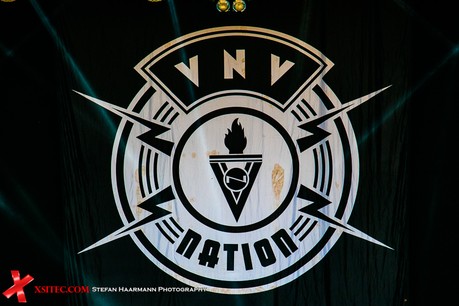 Gutgelaunt betreten VNV NATION die Turmhohe Bühne des SparkassenParks, turmhoch deshalb, damit von allen Plätzen aus die Sicht auf die Hauptakteure uneingeschränkt möglich ist. Ronan Harris & Co. starten mit „When Is The Future“, „Retaliate“ und „Tomorrow Never Comes“. Und während die Abendsonne in einem letzten Aufbäumen nochmals den Schweiß in Strömen fließen lässt, heizt die Band dem SparkassenPark von der Bühne noch zusätzlich ein. „Testament“, „Armour“, „Space & Time“, sowie das grandiose „Illusion“ sind weitere Highlights eines Konzerts, das im eigentlich mehr als 18.000 Zuschauern Platz bietenden SparkassenPark wieder so etwas wie Liveatmosphäre generiert.