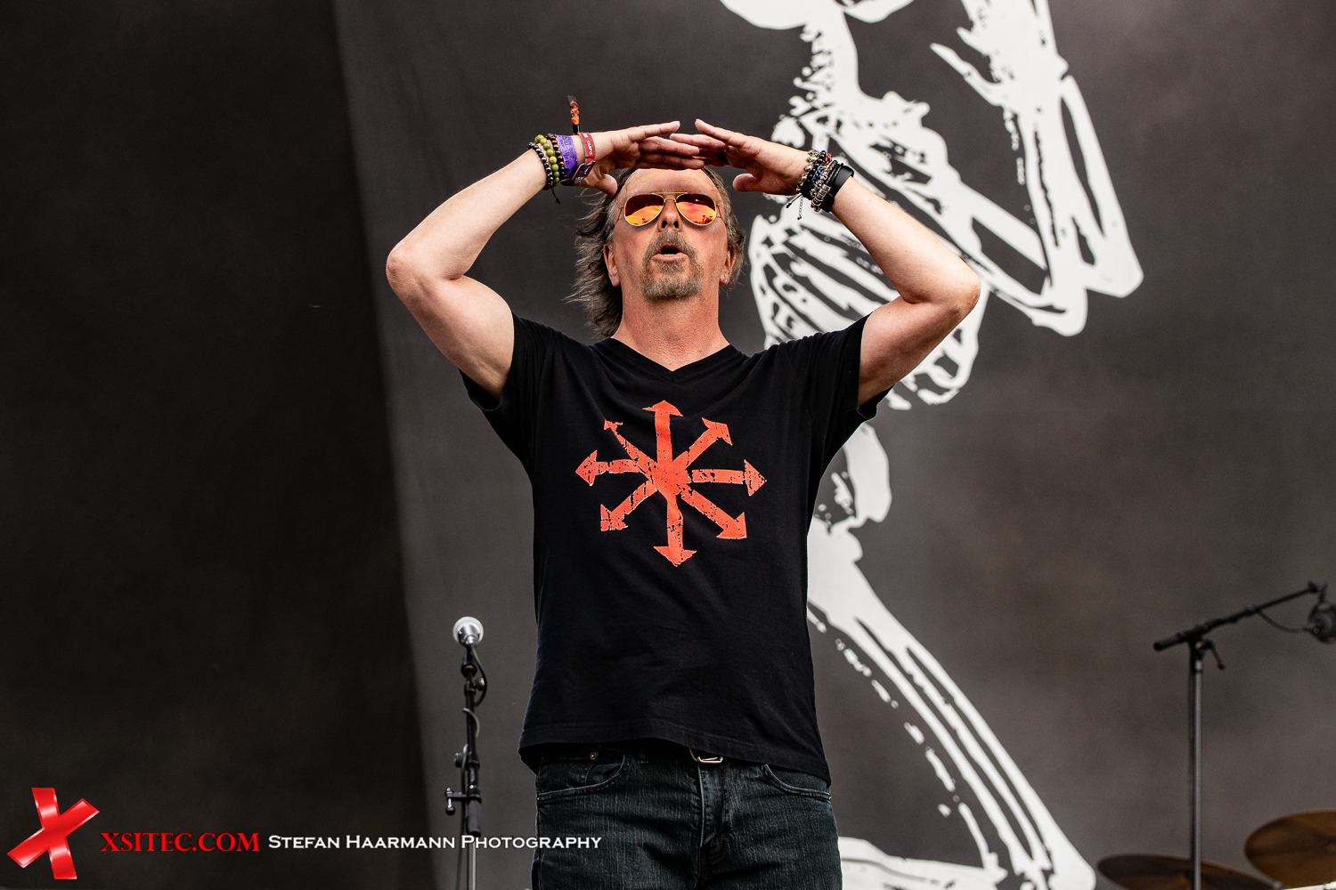 An GRAVE DIGGER kommt man in diesem Jahr nicht vorbei, zumal die Jungs um Mastermind Chris Boltendahl in diesem Jahr mit ihrer Jubiläumsshow unterwegs sind. Soll heißen: Viel Action aber wenig Platz auf der Bühne, denn zusätzlich zur normalen Besetzung sitzen und musizieren noch Dudelsackspieler und Trommler, die den Hits aus 40 Jahren Bandgeschichte wie „The Clans Will Rise Again“, „Excalibur“ oder „Rebellion (The Clans Are Marching ) stilgerecht neues Leben einhauchen. Ein ganz starker Auftritt und ein weiteres Highlight an diesem Tag.