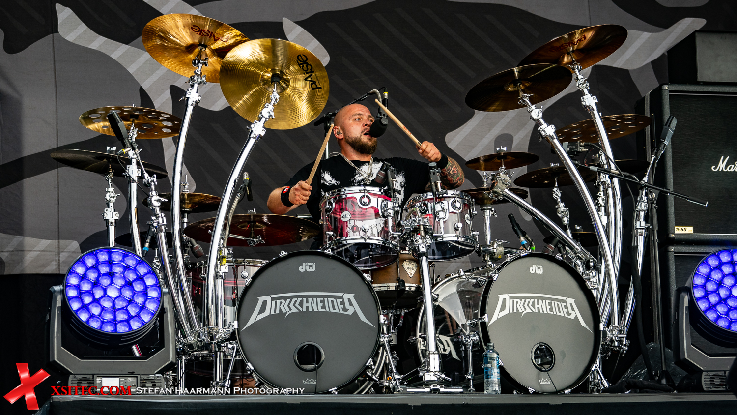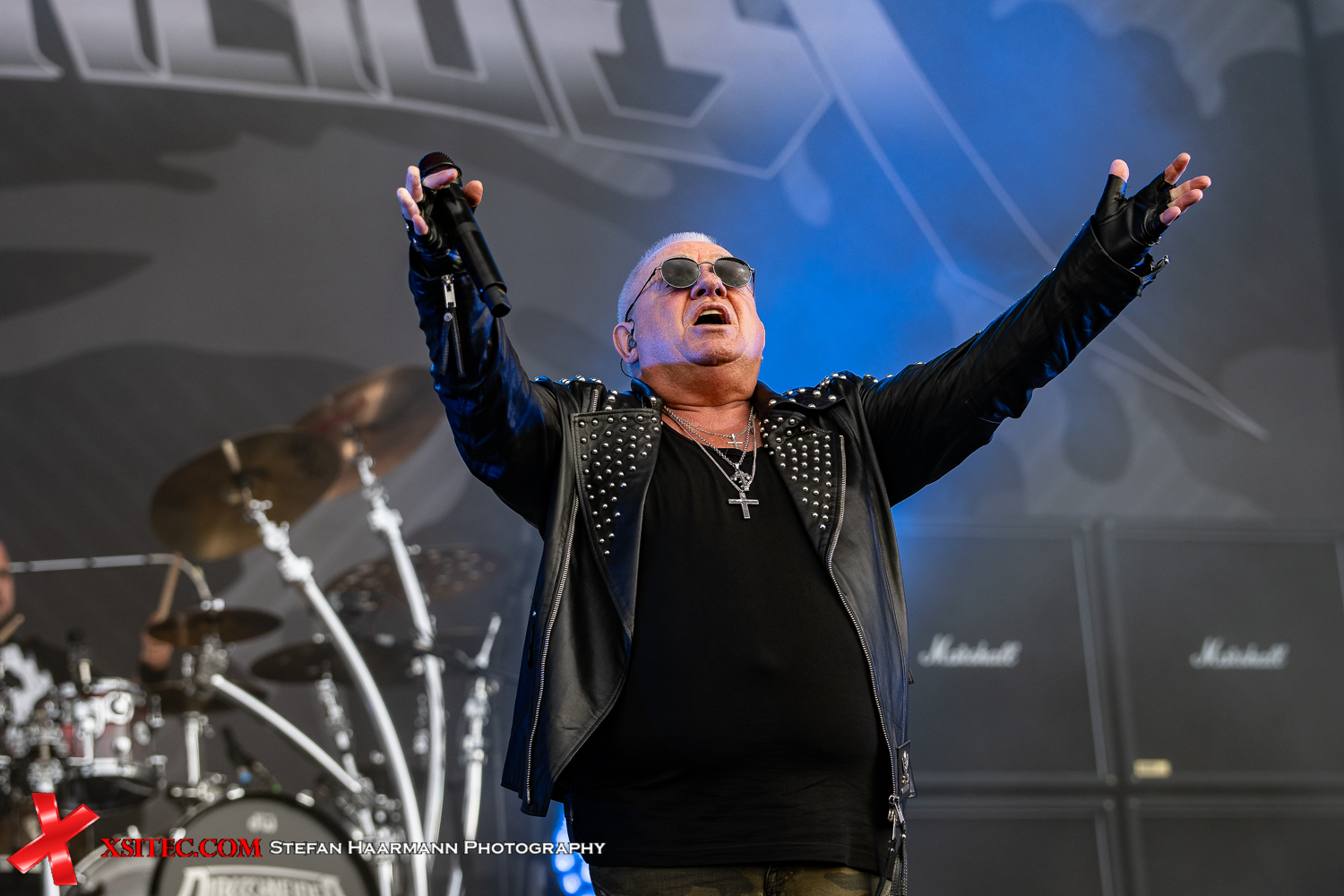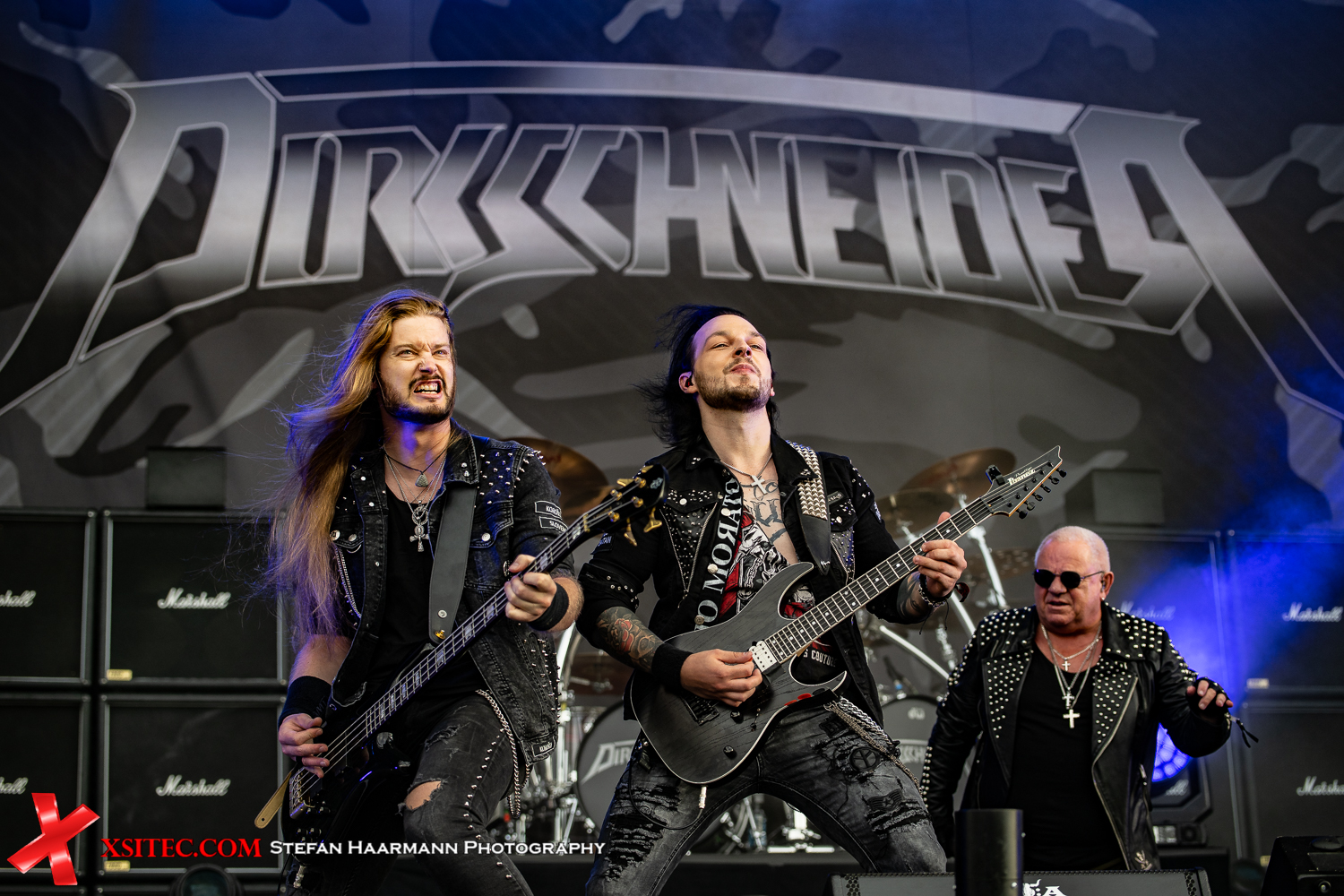 Zurück an der FASTER-Stage, gibt es hier das Deutsche Metal-Urgestein Udo DIRKSCHNEIDER zu begutachten. Dirkschneider, Gründungsmitglied von ACCEPT und als solches seit Ende der 1960er Jahre im Business, ist immer noch prächtig bei (Reibeisen-) Stimme und sichtlich gut gelaunt als er bei tollem Wetter und rappel vollem Infield die Bühne betritt. Präsentiert wird eine ausschließlich aus ACCEPT – Songs bestehende Setlist, auf der weder „Princess Of The Dawn“, „London Leatherboys“ noch „Balls To The Wall“ fehlen dürfen. Neben Vater Udo glänzt Sohnemann Sven Dirkschneider an den Drums, während Fabian Dee Dammers die Szenerie an der Gitarre dominiert. Die Frage, ob DIRKSCHNEIDER als ACCEPT Gründungsmitglied und Mitkomponist der meisten Hits der Band dennoch nicht besser Songs seiner Solo-Projekte gespielt hätte, wird zwar am Rande des Infields diskutiert, geht aber meiner Meinung nach an der Sache vorbei, zumal die Reaktion des Publikums eine deutliche Antwort gibt: DIRKSCHNEIDER ist aus der ACCEPT-Historie nicht wegzudenken und eigentlich immer noch heimlich Teil der Combo.
