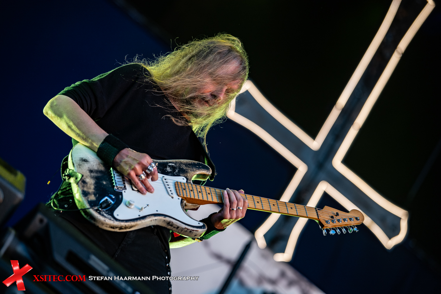 Danach gibt es ein Wiedersehen mit MERCYFUL FATE, die sich vor prächtiger Kulisse und ebensolcher Stimmung stilgerecht vor umgedrehtem Kreuz präsentieren. Obwohl sich die Band in den Jahren vor C-19 recht rar gemacht hatte, haben die Fans die Dänen um Mastermind Kim Bendix Petersen - besser bekannt als KING DIAMOND - nicht vergessen. Weder „Satan’s Fall“, „Curse Of The Pharaohs“, „Evil“, noch „A Corpse Without Soul“, oder „Into The Coven“ dürfen auf der Setlist fehlen. Die oftmals ausladenden Falsett-Parts sind nicht jedermanns Geschmack, aber die Einflüsse der Band sind auch heute noch im Bereich des Metal unüberhörbar.