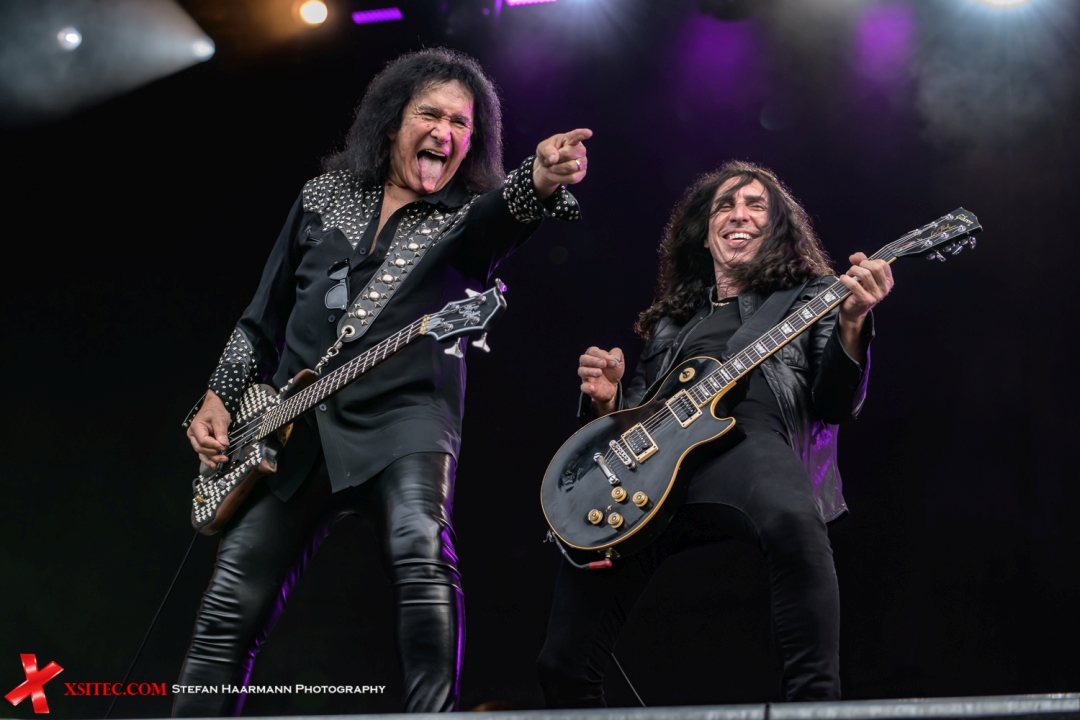 Dann aber ist es Zeit für KISS-Urgestein Gene Simmons, der an diesem Nachmittag mit seiner GENE SIMMONS BAND gutgelaunt und „unmasked“ auf der HARDER-Stage steht. Dass hier alte KISS-Klassiker im Mittelpunkt stehen, dürfte klar sein, den ein oder anderen Song seiner Soloplatten gibt es aber auch. Zu „Shout It Out Loud“ bittet Simmons dann eine Reihe Kinder zu sich auf die Bühne, die mit ihm den KISS-Hit singen sollen, was nicht funktioniert, da die Kids den Song nicht wirklich kennen. Im weiteren Verlauf dreht die Band dann erfreulicherweise deutlich auf und mit „Cold Gin“, „Charisma“, „Calling Dr. Love“, sowie dem abschließenden „Rock And Roll All Nite“ steht das gesamte Infield wie ein Mann hinter dem „Demon“, der immer noch sichtlich Spaß an seinem Job hat.