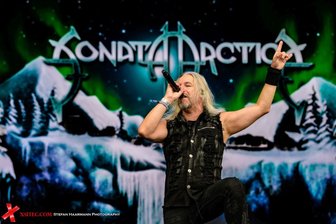 seine Version des britischen Punkrocks um die Ohren, die schlagartig für gute Laune vor der Bühne sorgt. Viel Zeit bleibt leider nicht, denn auf der FASTER-Stage starten fast zeitgleich SONATA ARCTICA ihre Matinee. Finnischer Power Metal ist immer eine Option und so füllt sich das Infield mit beeindruckender Schnelligkeit, während die Jungs um Tommy Portimo bestens gelaunt Gas geben.