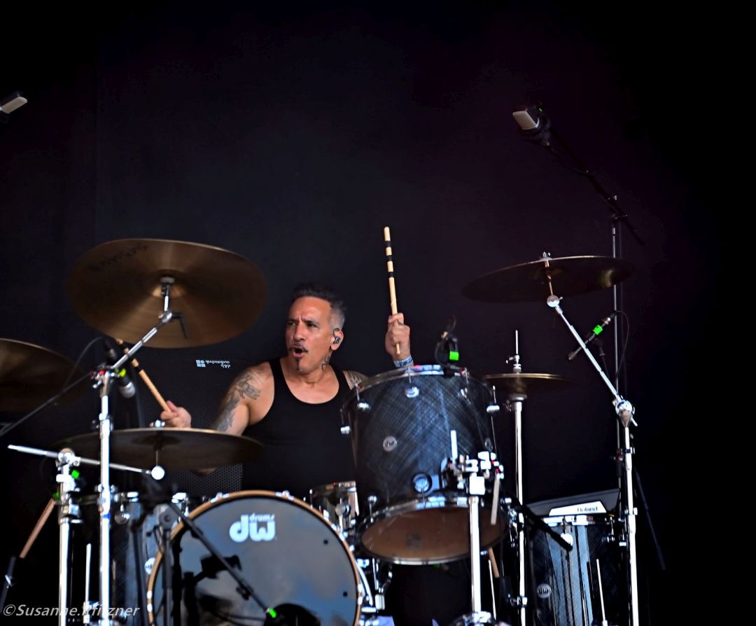 PEYTON PARRISH übernimmt danach auf der Harder Stage. Bekannt für seine tiefen, markanten Vocals und seine Mischung aus Modern Rock, Country-Elementen und Wikinger-Ästhetik, zieht er ein gemischtes Publikum an. Die Harder Stage selbst ist ein Monster – so hoch, dass kleine Fotografinnen hier ohne Hocker kaum auf Augenhöhe mit den Künstlern kommen. Kein Wunder, dass viele Kollegen kleine Trittleitern im Fotograben dabeihaben.