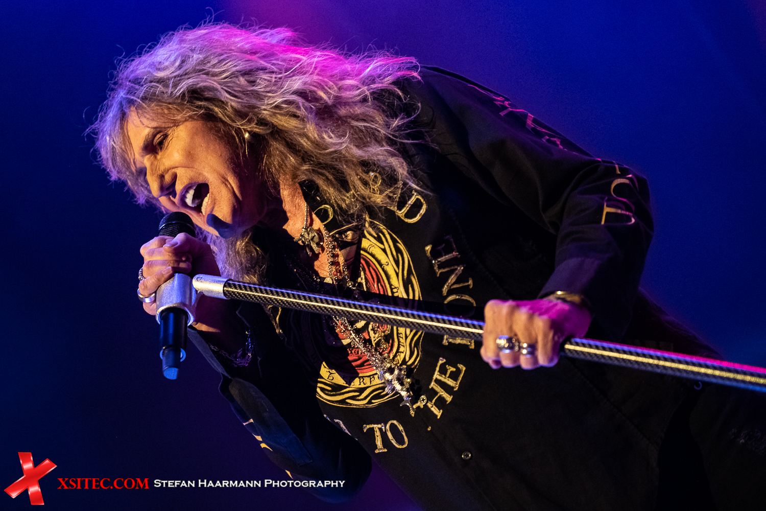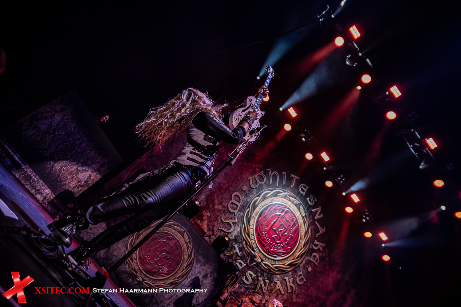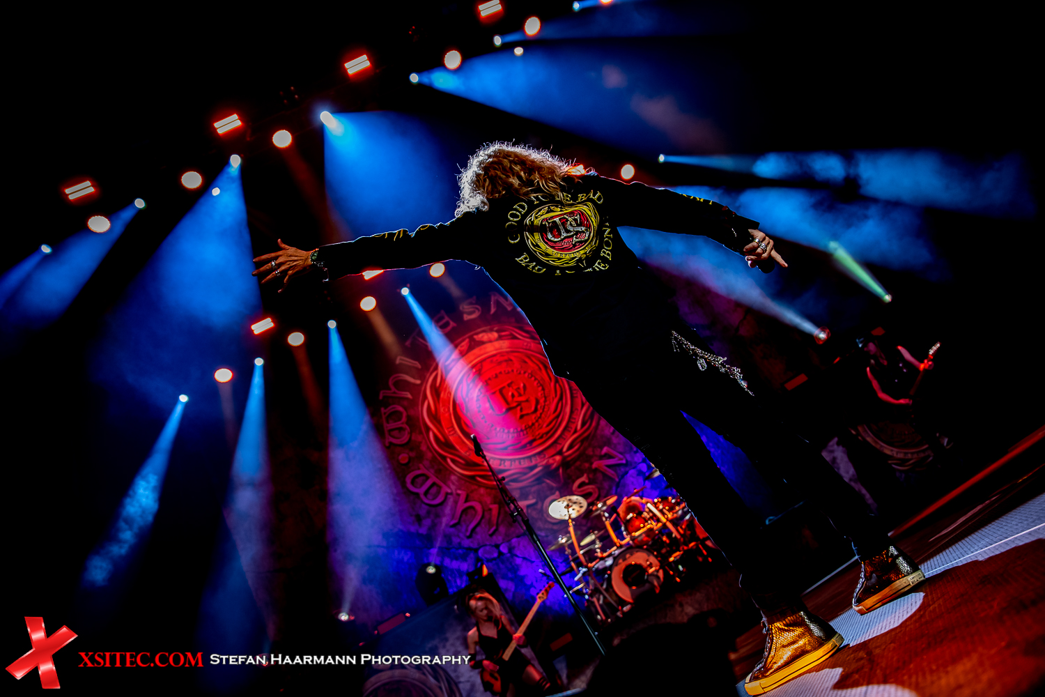 Direkt im Anschluss folgt mit „Slide It In“ ein weiterer, unverwüstlicher Song, der perfekt arrangierte Chöre beinhaltet, die den Großmeister in den High Notes unterstützen. Nach dem umjubelten „Good evening, Oberhausen, it´s been a while, lovely to see you – wie geht’s mein Lieber?“ gibt es mit „Love Ain´t No Stranger“ den wohl größen, kommerziellen Single Erfolg der Band, wiederum perfekt arrangiert und mit Chorgesang der groovenden Band ausgesprochen gut in Szene gesetzt. Im Anschluss gibt es mit „Hey You“ einen echten Rocker, in dem vor allem Joel Hoeckstra mit gewaltigen Posen und ebensolchen Soli die Augen der Fans auf sich zieht. „Slow And Easy“, der nächste Eintrag der Setlist, zeigt die ganze Magie einer Band, die in den Jahren ihres Bestehens niemals auf der Stelle getreten hat.